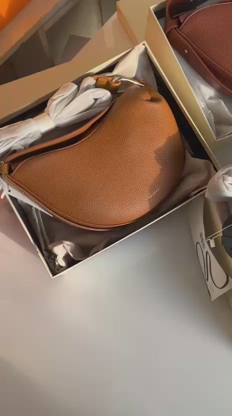 Can be worn over the shoulder or on one arm, with a long or short “baguette”-style strap